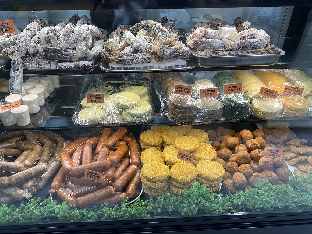 Vegetarian butcher shop and delicatessen. Offers a wide range of mock meats and prepared dishes sold by weight. Vegan options include soy-based cordon bleu, wieners (würstel), seitan cutlets, and meatballs. Traditional Neapolitan street food is also available, such as vegan arancini, potato croquettes (crocchè), and pasta fritters (frittatina) made with soy mince and béchamel. Ready-made sauces like Genovese and Bolognese are sold in jars. Please note that some vegetable dishes contain dairy cheese (grana padano or ricotta). Open Tue-Fri 08:30-20:00, Sat 10:00-20:00. Closed Mon & Sun.