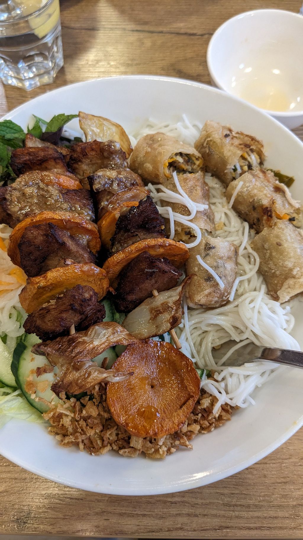 Left: Wonton, Right: No. 42, don’t like the barbecue but the spring ro…