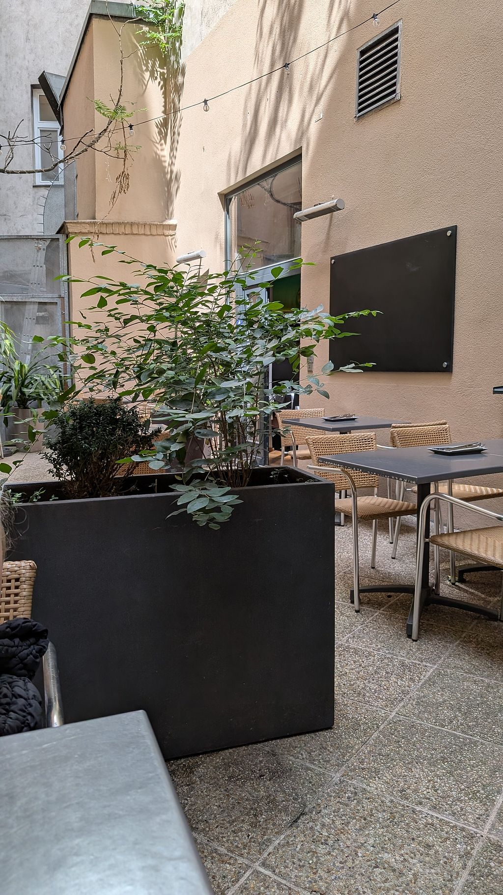 I am already a frequent customer in two of their other branches, therefore I was excited to experience the new place/menu. The interior is nice and cozy, but due to the current heat we preferred to sit in the garden/inner courtyard, which is absolutely lovely with all the plants and neutral colors, and the needed shade in summer ;)