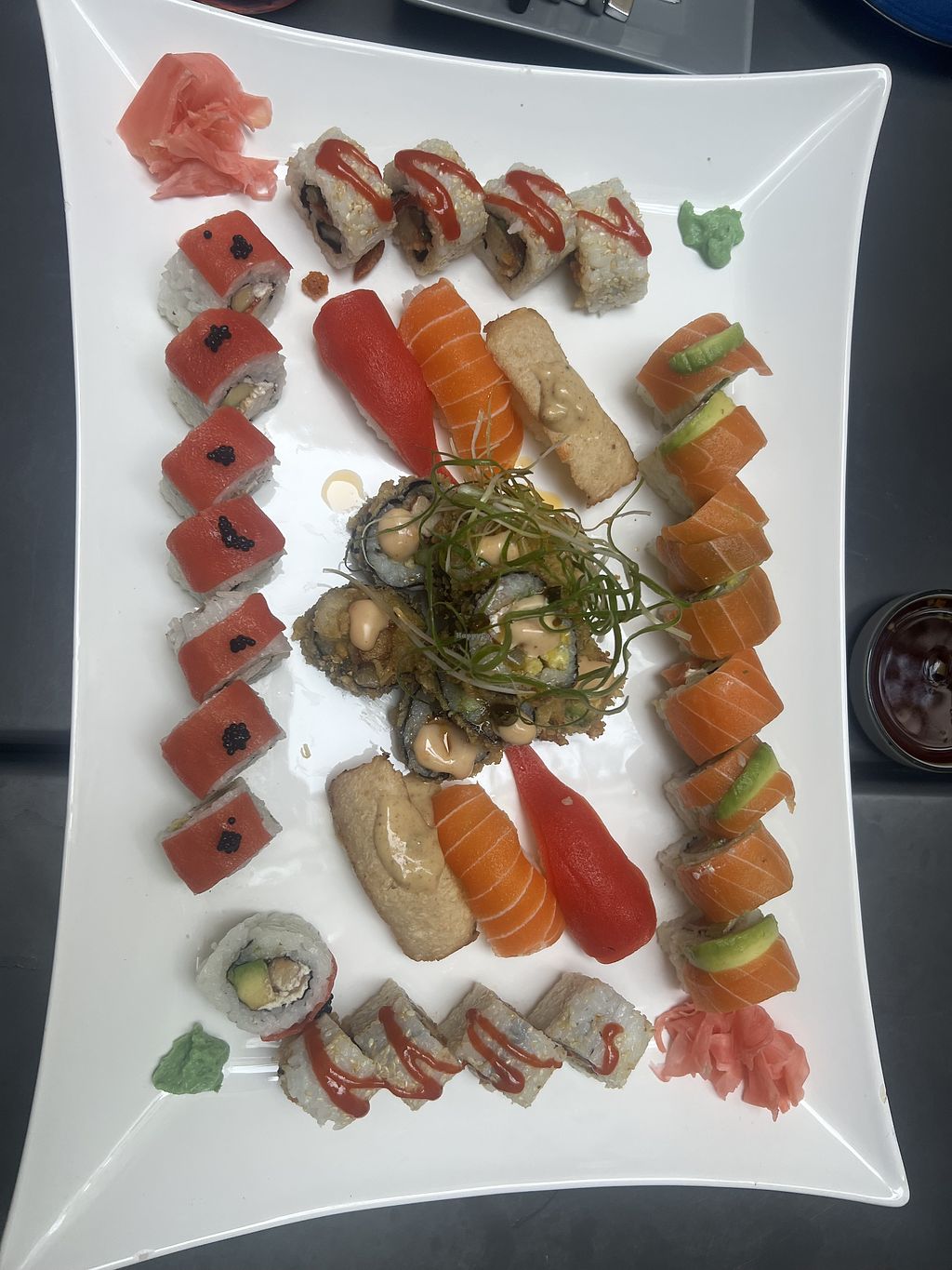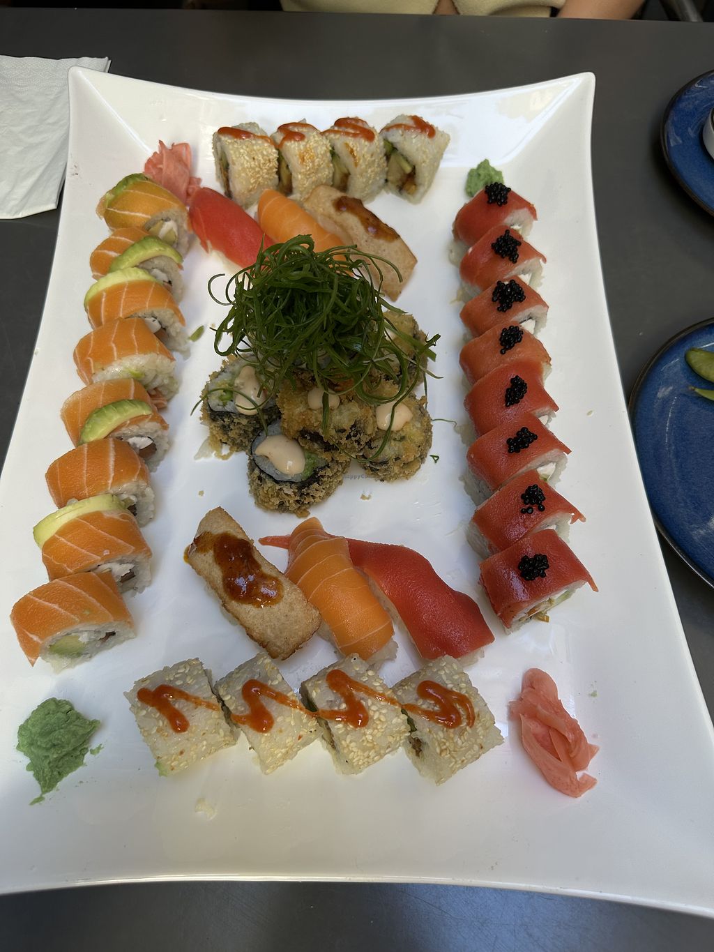 Die Sushiplatte ist ein Muss für jede, die bisher mit Avocado und Gurken Maki auskommen musste. Ich hab literally fast geweint, so gut wars.