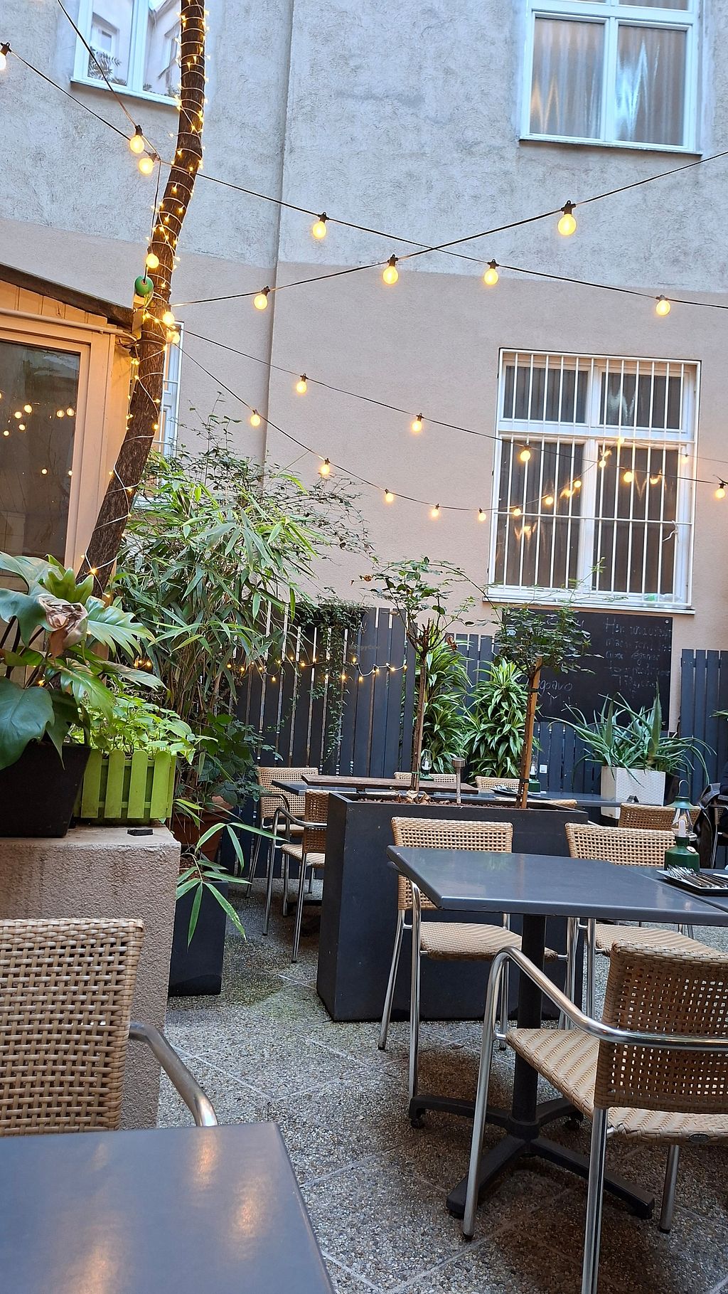 There's a nice Gastgarten in the back alley where it is cool even at 30°