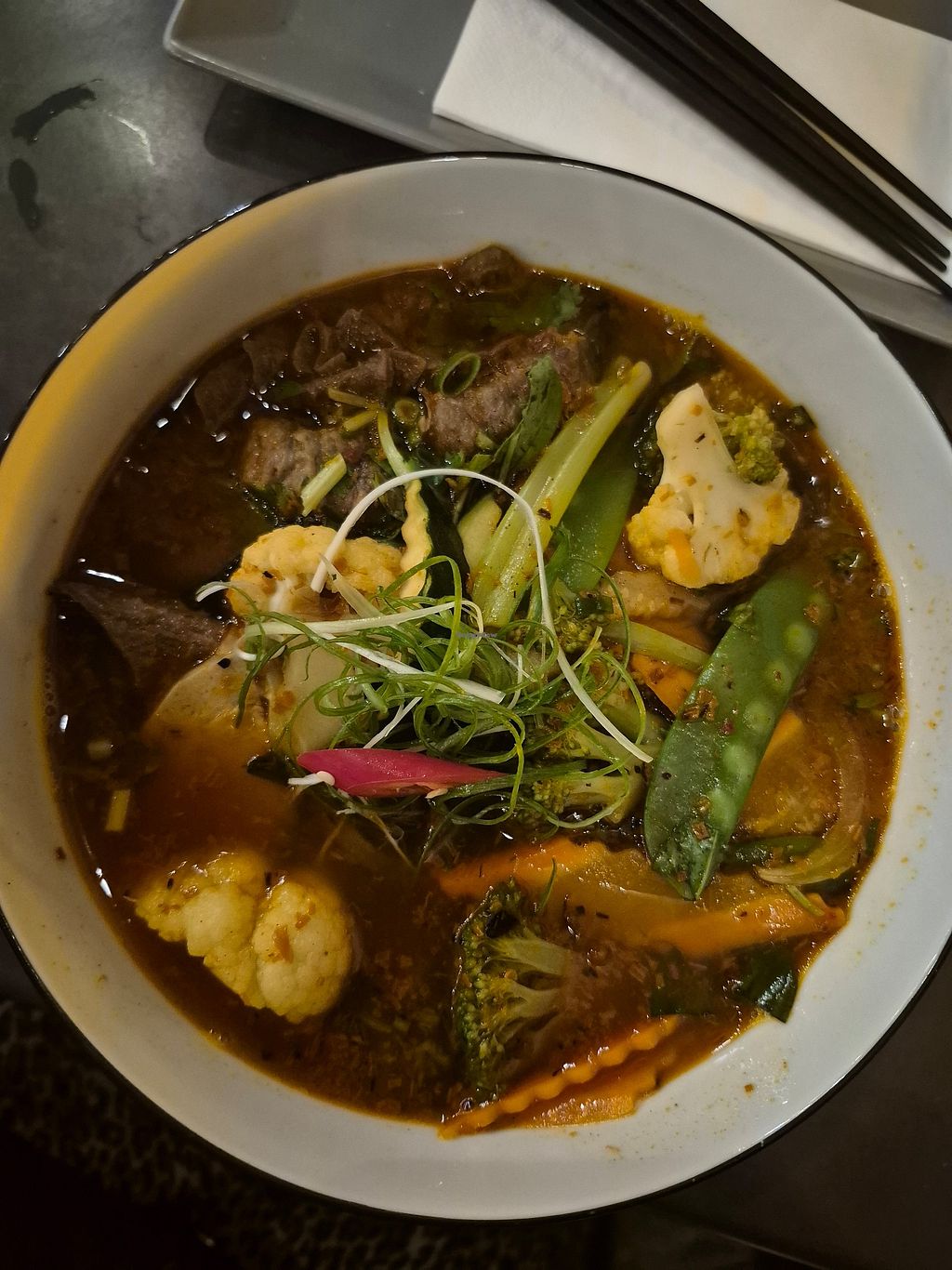 We shared two starters, a spicy duck sushi roll, and two hotpots (kokos-curry, pho, sweet & sour) and everything was delicious! Kokos-curry was the table favourite! There were generous amounts of all the veggies, tofu, seitan, and soja pieces. Also enjoyed some lovely Vietnamese coffee😄Service was really attentive and welcoming. Would definitely return when in Vienna again!!
