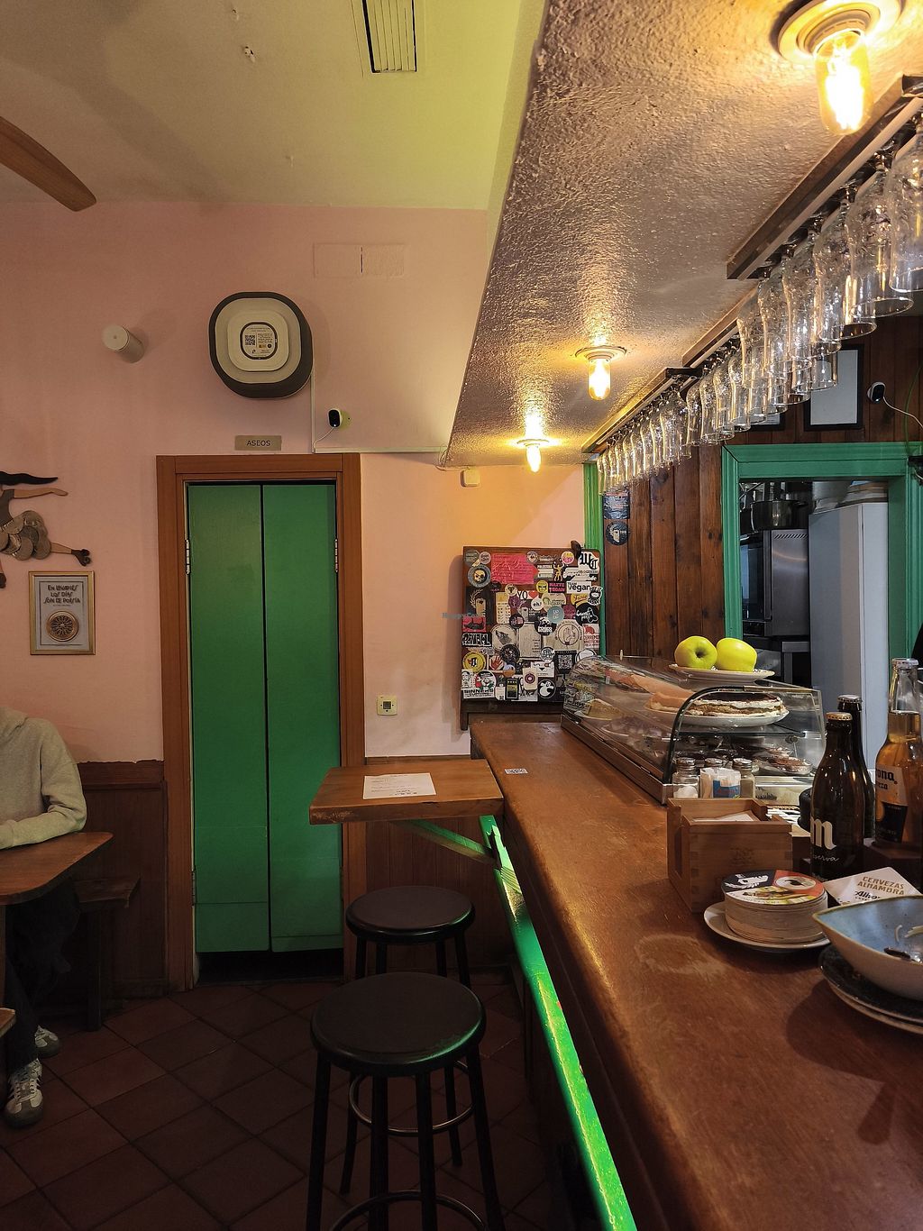 A traditional tavern that changed its menu to be fully vegan in May 2020. Specializes in Spanish omelettes (wthout egg) as well as serving other foods like pizza, arepa, burgers, chapata sandwiches, tortillas, and cakes. Open Tue-Thu 10:00-23:30, Fri 10:00-00:00, Sat 11:30-00:00, Sun 11:30-17:00. Closed Mon.