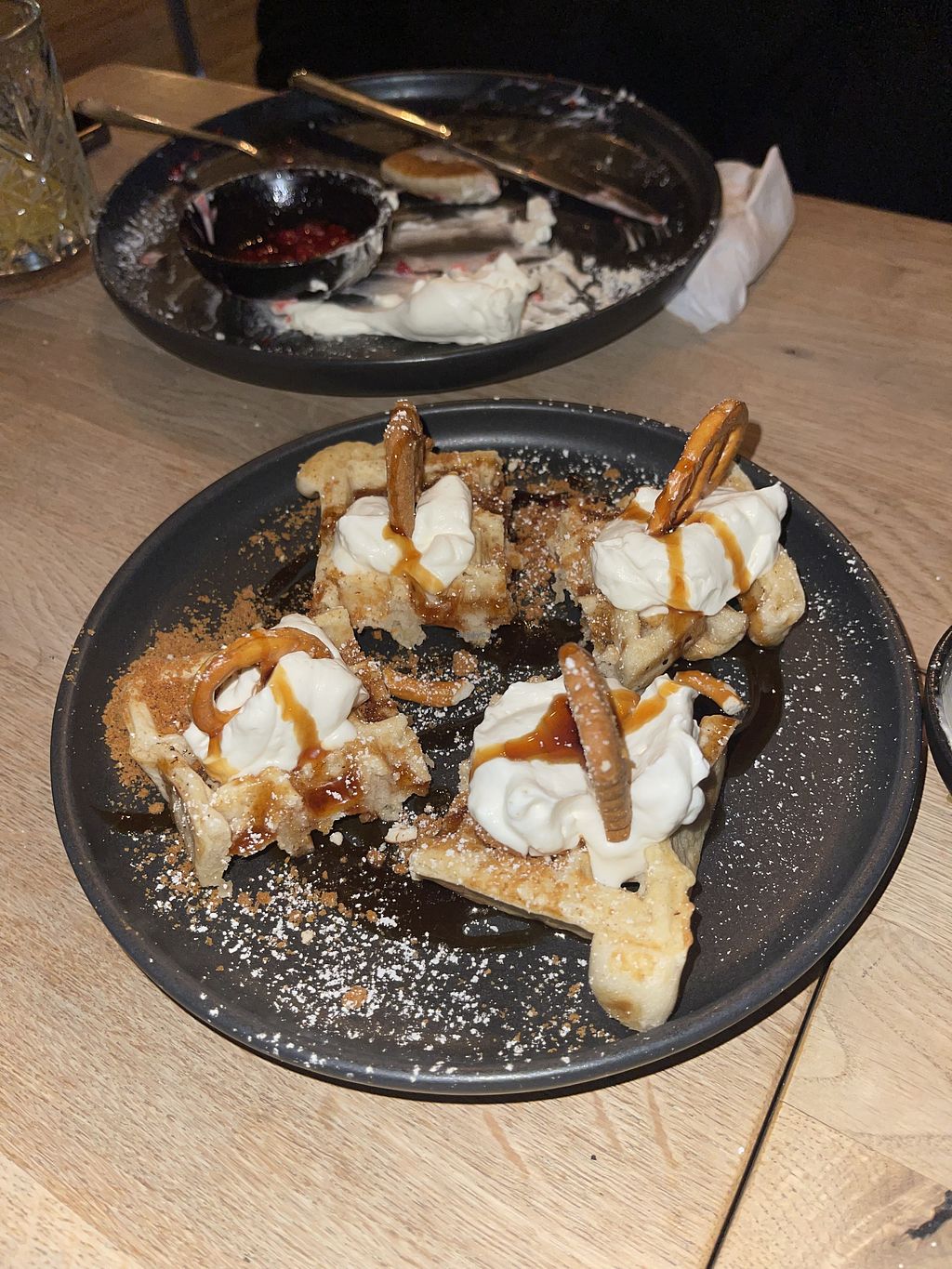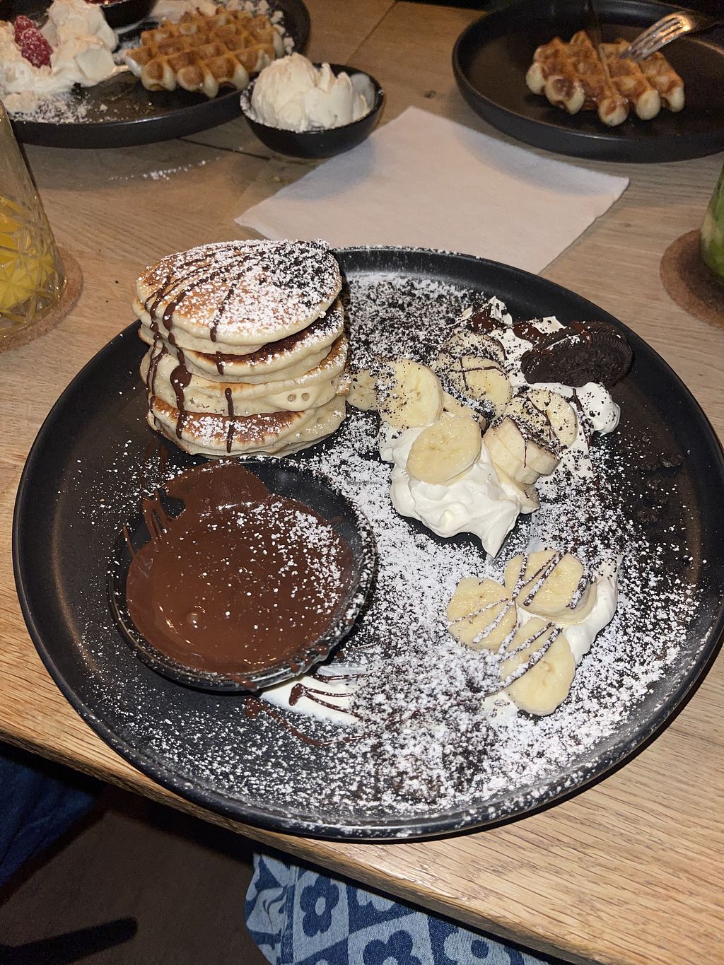 Es war sehr lecker und sehr bedacht. Wir kamen mit 2 Hunden was auch kein Problem war. Die Waffel mit Karamell und die Pancakes mit Bananen waren sehr lecker. Das Detox Wasser kann ich auch empfehlen😄