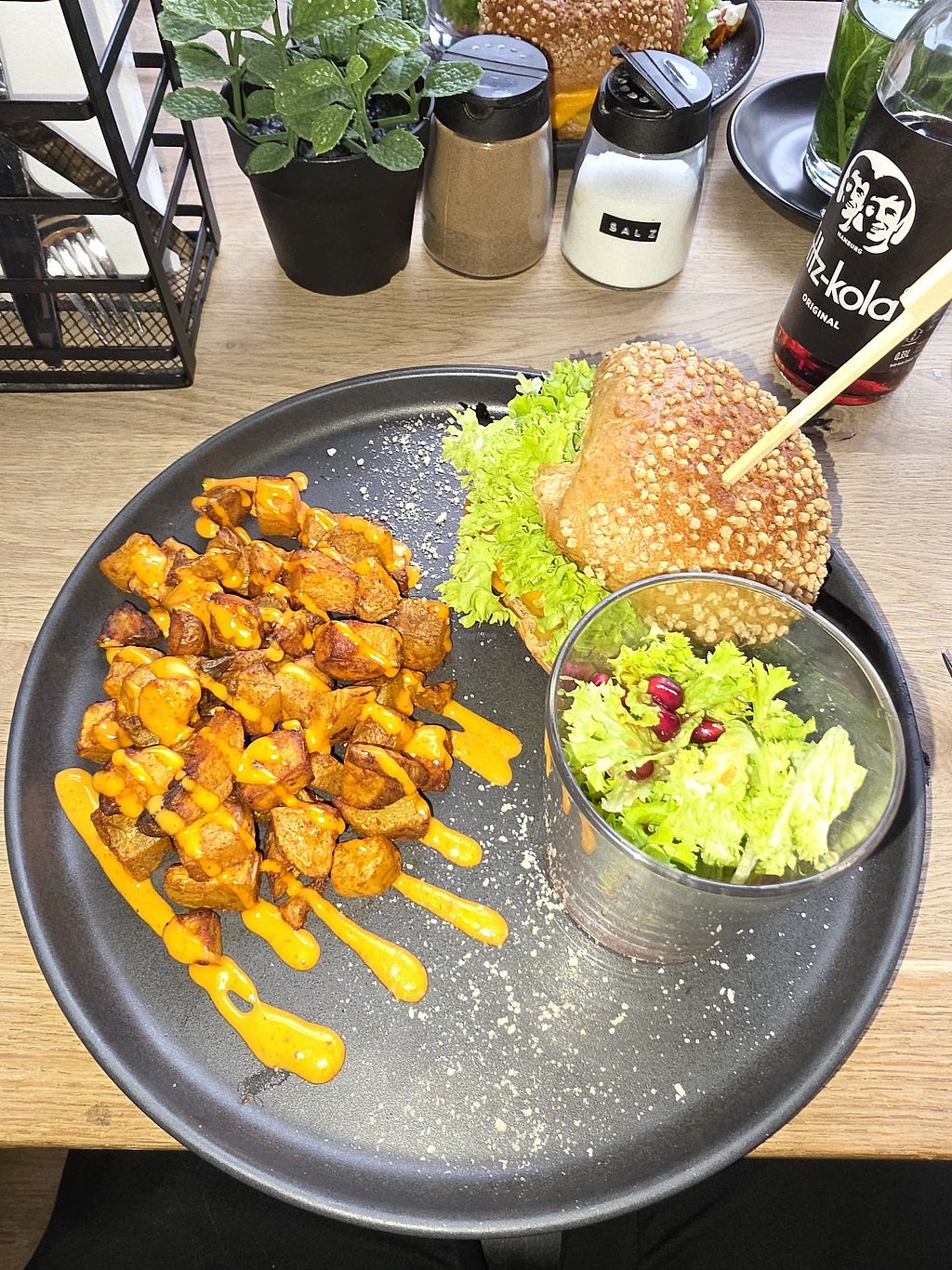 Wir waren zu dritt da und haben viel zu viel bestellt, weil wir am Liebsten alles probiert hätten und alles was wir hatten war unfassbar lecker. Mein Highlight war die vegane Variante von „Chick‘n‘Waffles“. Soooo gut🤤