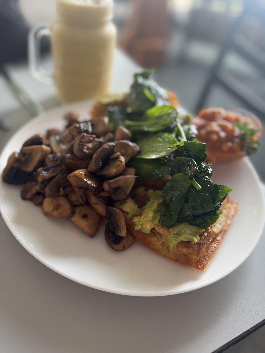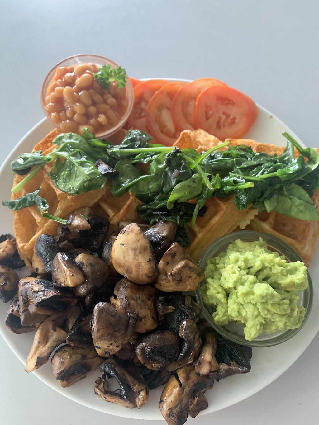 Read moreAsk for a savoury option! Vegan waffles with avocado, mushrooms, tomatoes, baked beans and spring onion.