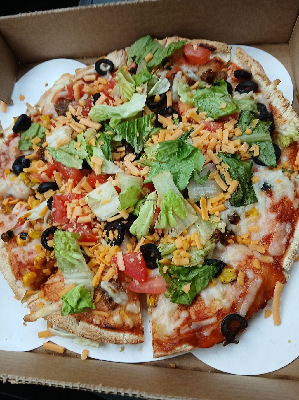 This is by far the best vegan pizza I've had! You must try the cheesy garlic bread. Ask for the vegan menu ! Never thought I could get pizza delivery again, luckily I was wrong. I love taking my omni friends and family and letting them taste my vegan versions: they are always pleasantly surprised! It's hard to share with them because it's so good, haha. Taco pizza aka Tex Mex pizza is also a favorite of mine.