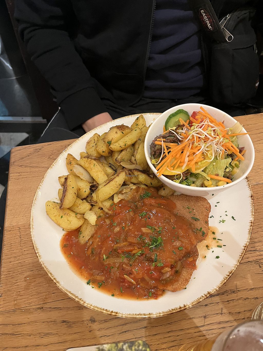 The restaurant offers solid German vegan food with a nice variety of traditional dishes made plant-based. The portions were generous and everything tasted fresh. However, I didn’t find the flavors particularly exciting — it was good, but nothing that really stood out. The atmosphere was pleasant, and the staff was friendly, but overall, it felt more like a decent everyday meal rather than something special.
