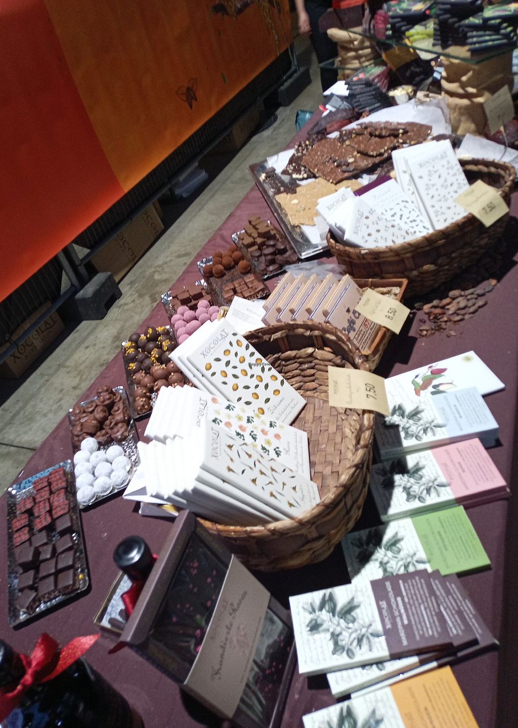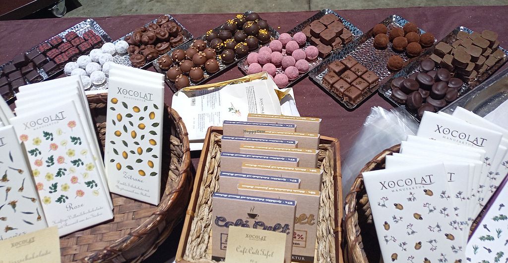 They have some vegan chocolate bars and 12 different vegan bonbons, wich are very nice. You can handpick the bonbons that you want to take home with you in (for example) a 12 piece box. Some of them have a marsipan filling so if you don't like that just make sure you pick others instead.