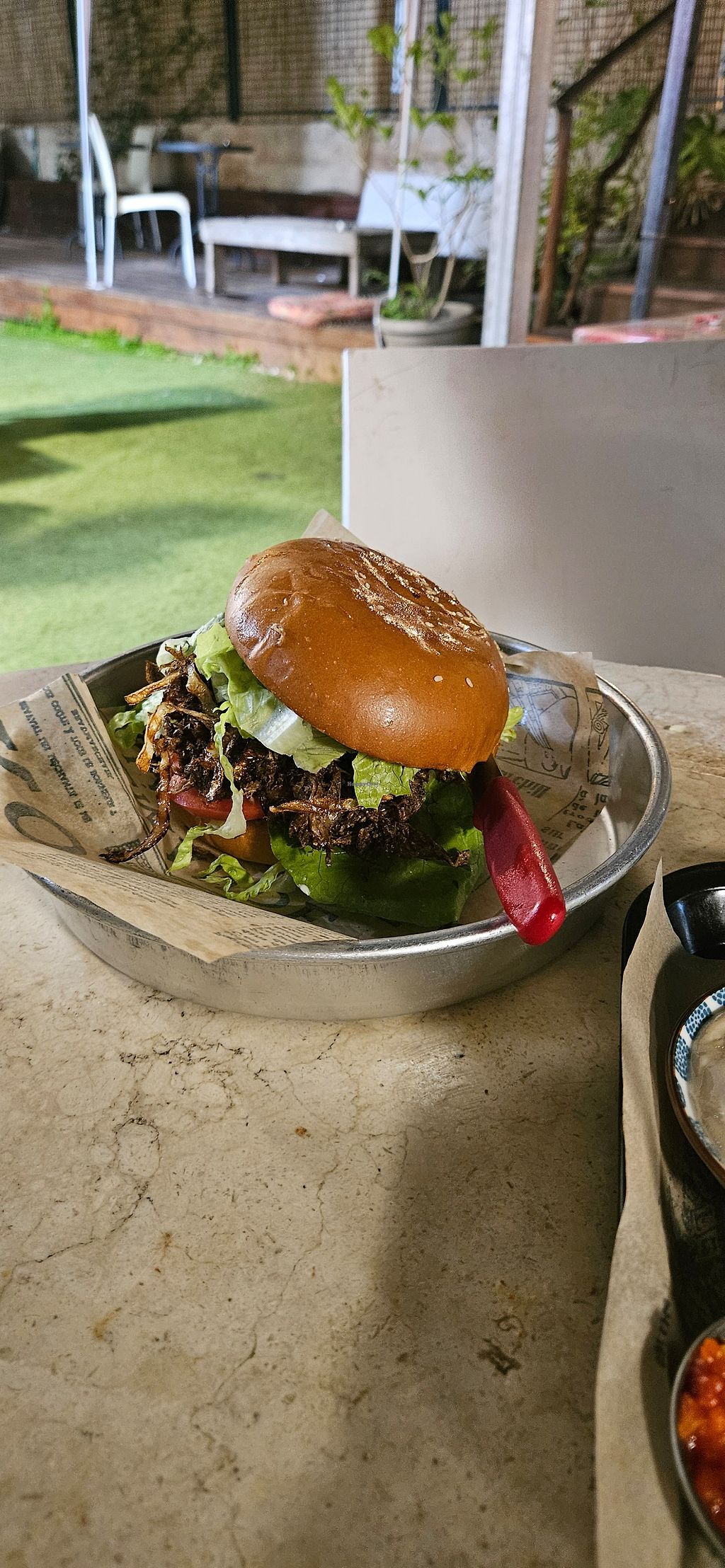 A cute little stall offering vegan food, the day we arrived there were no dishes like the burger with the egg on top and the chilli non corne was not ready yet so instead we took the burger from pea protein and buckwheat nachos. The burger was excellent, properly seasoned and the vegetables that came with it like fried onions and mushrooms definitely bounced off the dish. The buckwheat nachos unfortunately was bland, the seasoning did not really stick to the nachos and the sauces we got with it were a smoothie that I had very spicy and an orange sauce that was nicer.