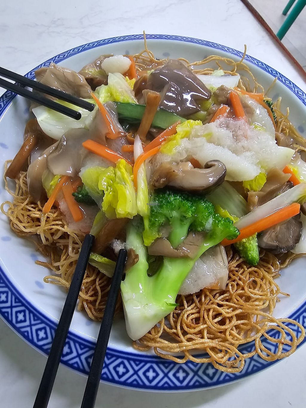 Quality - This is a hard one for me to rate since it is what I'm guessing the most authentic chinese food I've ever had and I didn't really know what I'd like. I ordered the Fried Crispy Noodle with Mixed Vegetables (Fried Rice #5) and this was a bit of a miss for me. The crispy noodles lived up to their name but were pretty flavorless. The mixed vegetables were good but half of it was mushrrooms (4 variety) and I'm not a huge fan of mushrooms. That caught me a bit off guard from the picture in the menu which didn't show so many mushrooms. My SO ordered some other things which were very tasty and wonderful though. I think one of them was the deep-fried beancurd sheet (main dish #5), and then the other thing might've been the Lotus root and wheat gluten in sweet and sour sauce with rice (fast meal #E). I loved those and wish I would've gotten them myself!!
