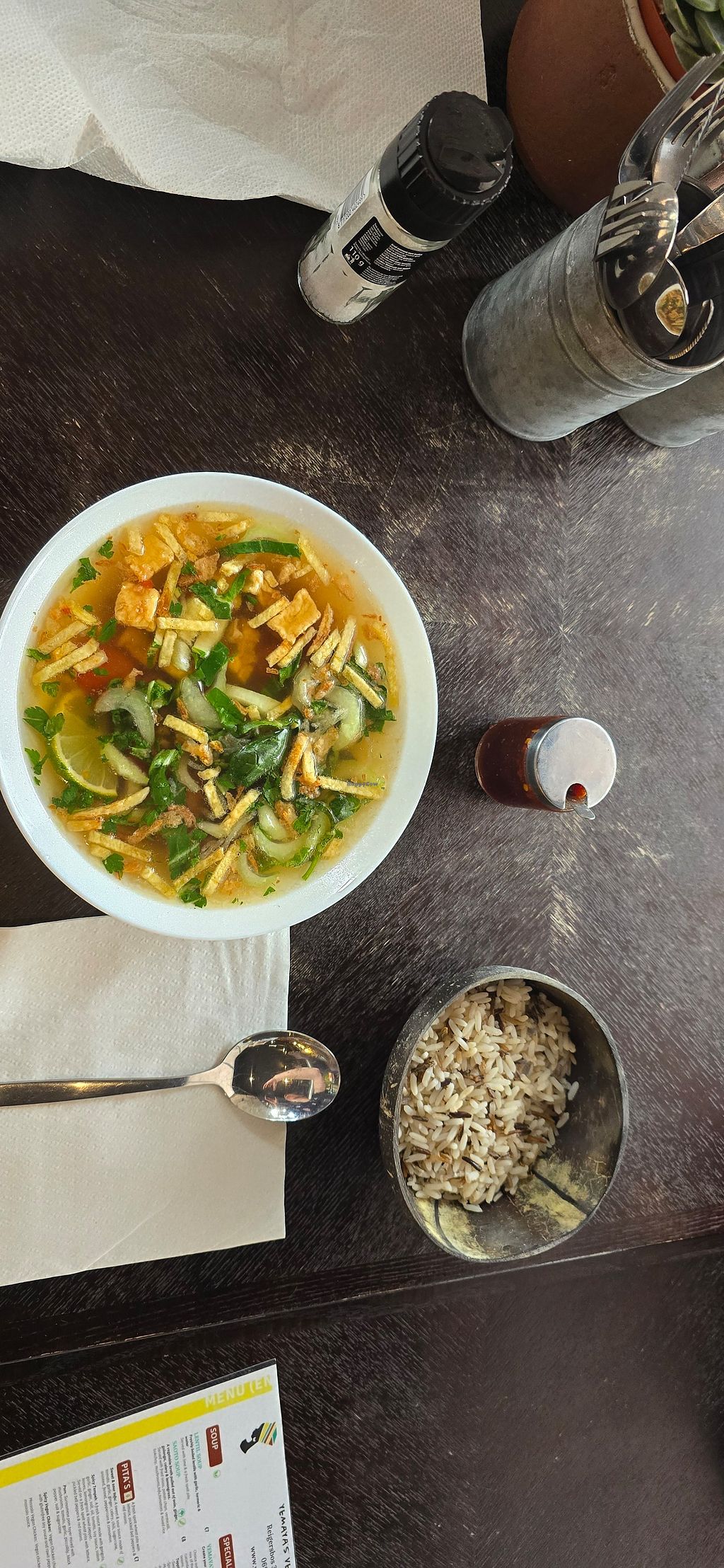Heerlijke linzensoep gegeten helaas was het brooddeeg op waardoor we geen pizza en roti rol konden bestellen. Dit werd gecompenseerd met een gigantisch stuk appeltaart😍