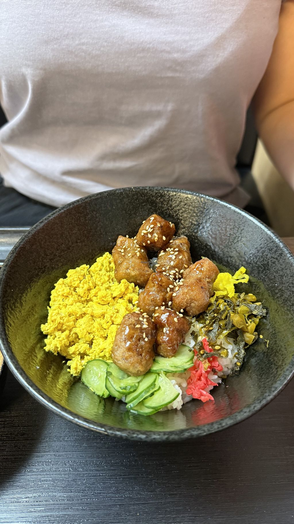 We chose one of their vegan options for take away. A bowl with rice, pickles, scrambled tofu and braised mushrooms. Very tasty and fulfilling. The owners were very kind. We recommend this place for dinner if you want to feel an authentic vibe.
