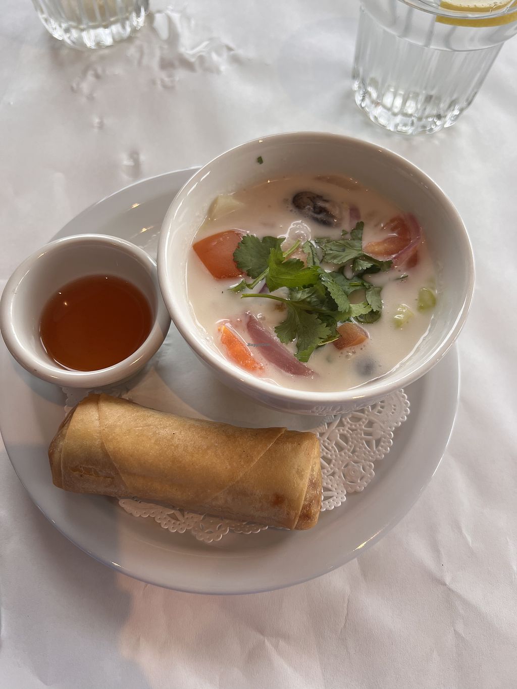 Read morePros: Coconut soup with mushrooms! , Spring roll veggies, Young ginger