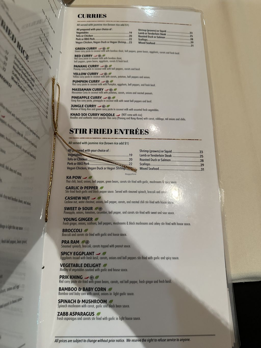 They have a whole vegan menu and have some items that can be veganized. Overall great experience. Have ordered food from them before but never dined in. This was the first time that we dined in. Food was delicious. Ordered pad thai, massamman curry and a few other items. Everything was good.