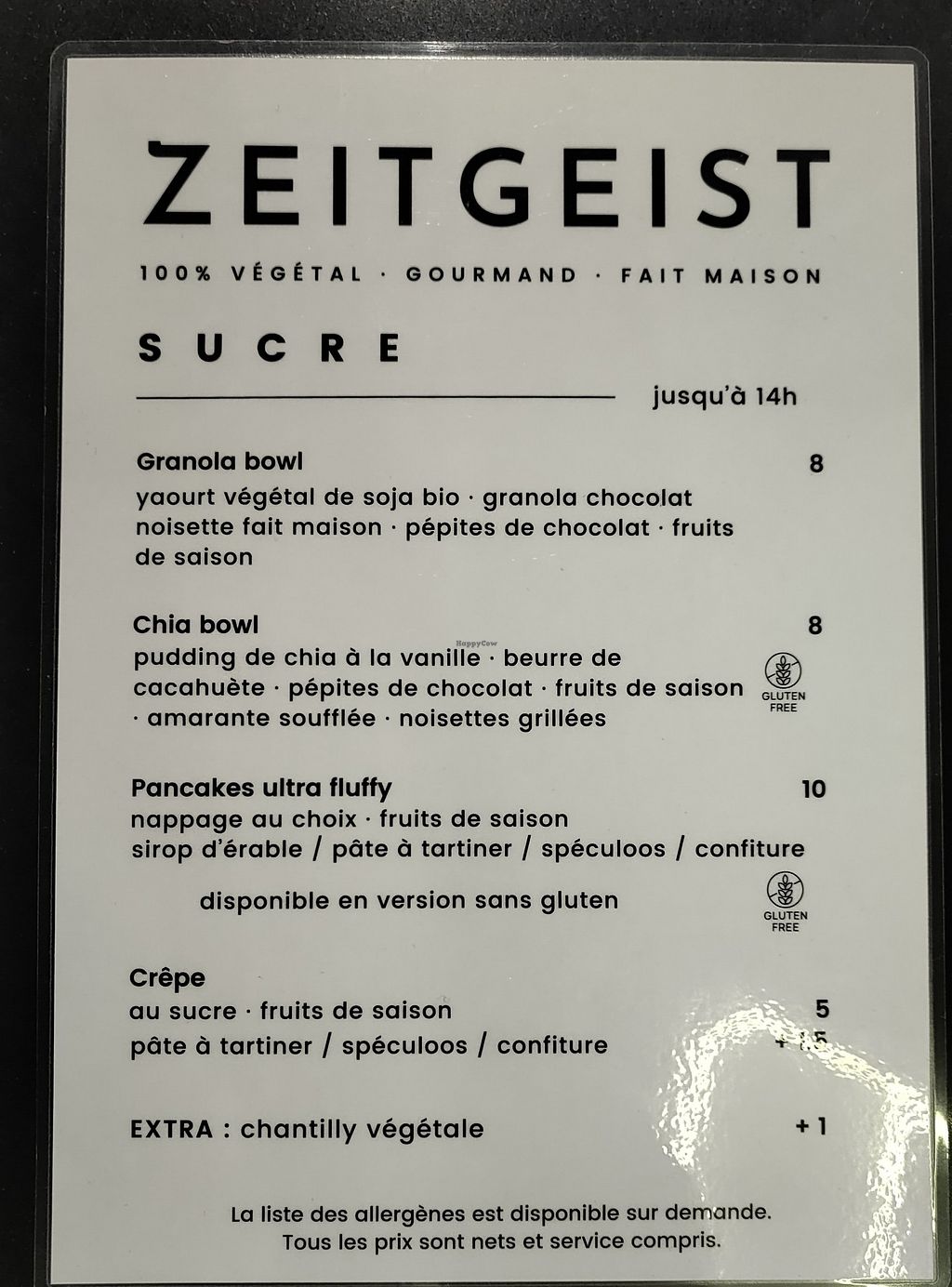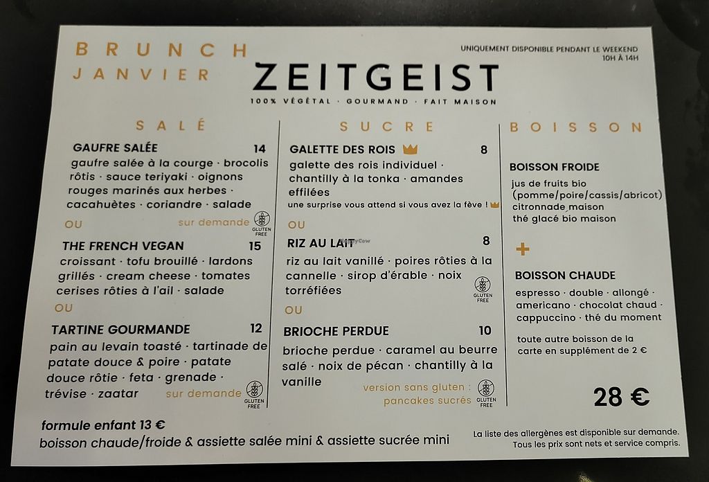 Almost hidden on a side street, it is worth seeking out! I have enjoyed everything I've had there: cinnamon roll, croissant, allongée coffee (in a small glass), “The French Vegan” breakfast plate, lasagne lunch, speculoos-crumble-topped pastry, tiramisu cheesecake… My friend enjoyed the pancakes with fresh fruit and maple syrup and the Chantilly hot chocolate. Lunch menu from 11:30 a.m.