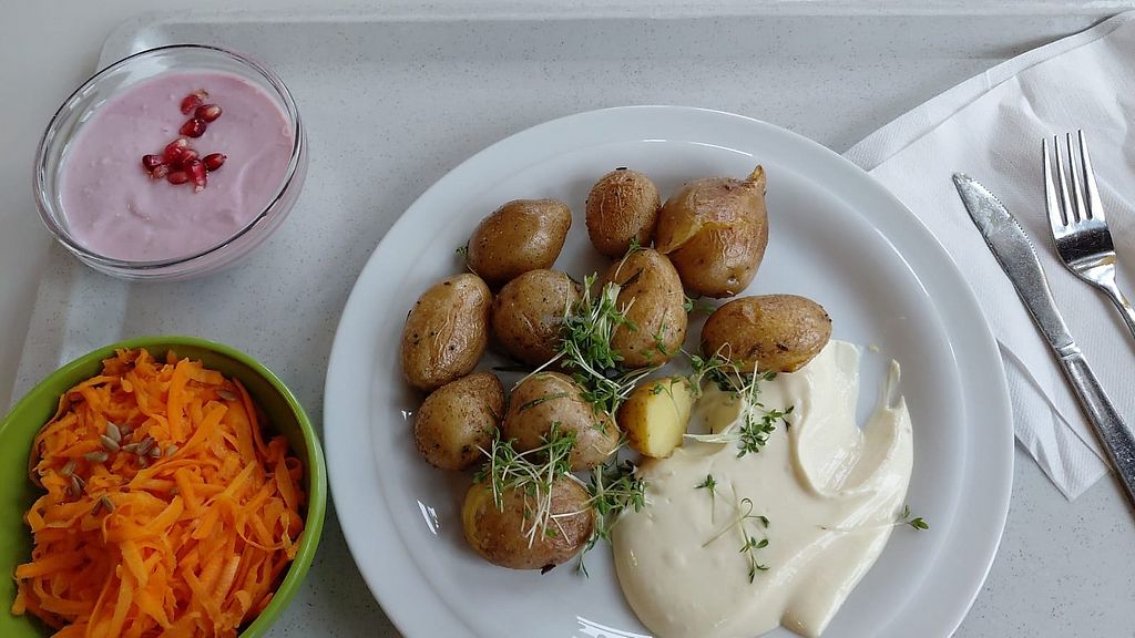 Cons: Nur selten ein zweites veganes Hauptgericht, An der Salatbar nicht alles klar gekennzeichnet, Kräuterquark als Beilage gibt es, aber nicht vegan