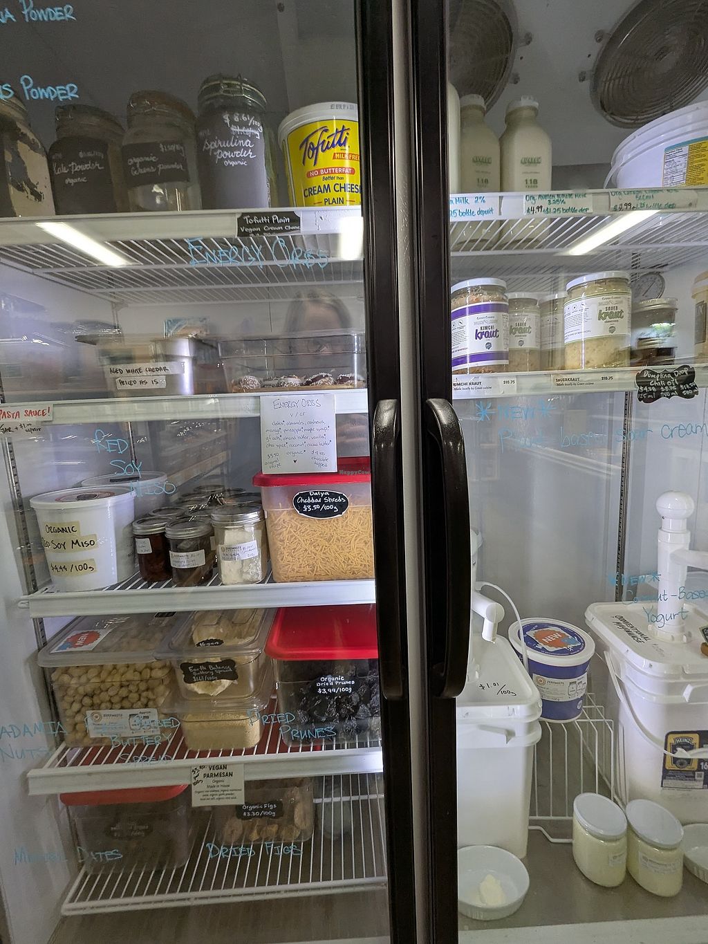 Make sure to check the chillers and freezers at the back: there are (Apr-2026) bulk frozen berries, other fruits and mixed vegetables; Earth Balance vegan butter, Daiya cheez shreds, miso; vegan breaded tenders, nuggets and sausages; vegan Yo Egg; Beyond Meat burgers; also some Green Cuisine products such as sauerkraut, tempeh and tofu.