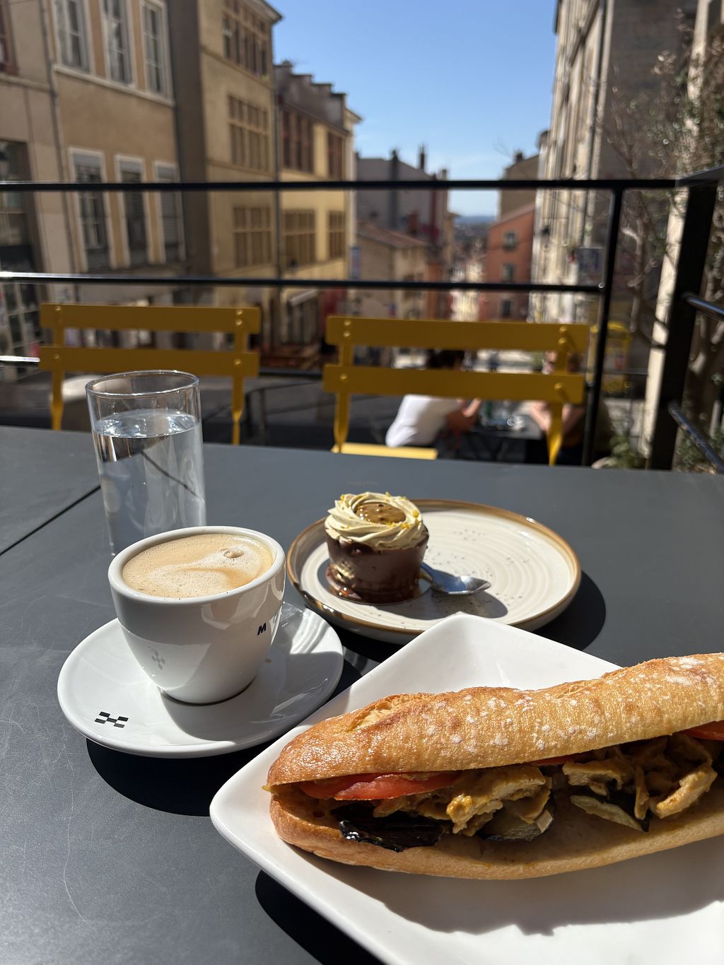 I was there twice, I had a wrap (8/10), the tiramisu (7.5/10), the apricot flan (9/10), the choc chip cookie (8.5/10). High recommend the traditional diabolo (the strawberry one with lemonade was really good). Most of all I liked the location and cute terrace ☀️