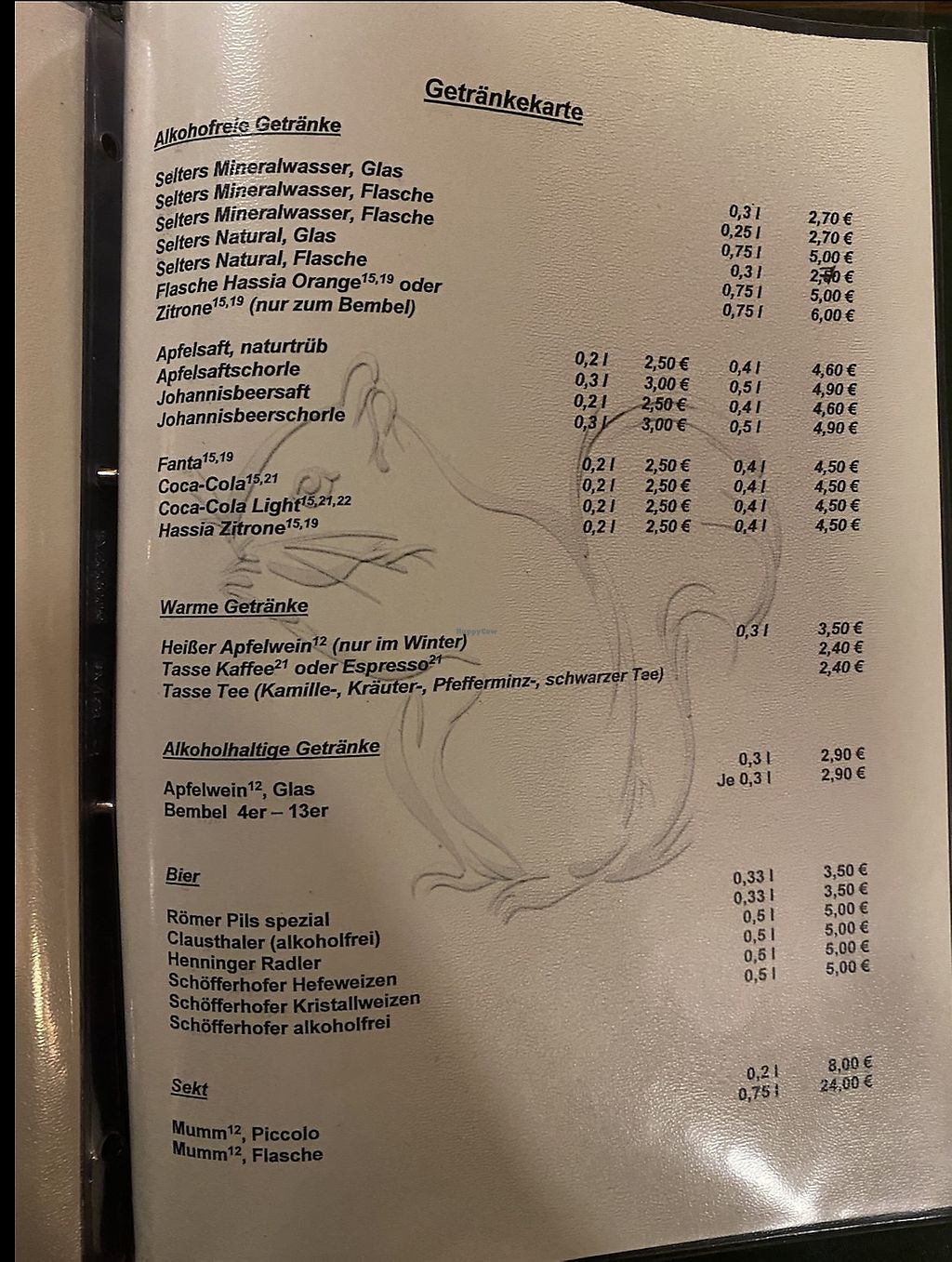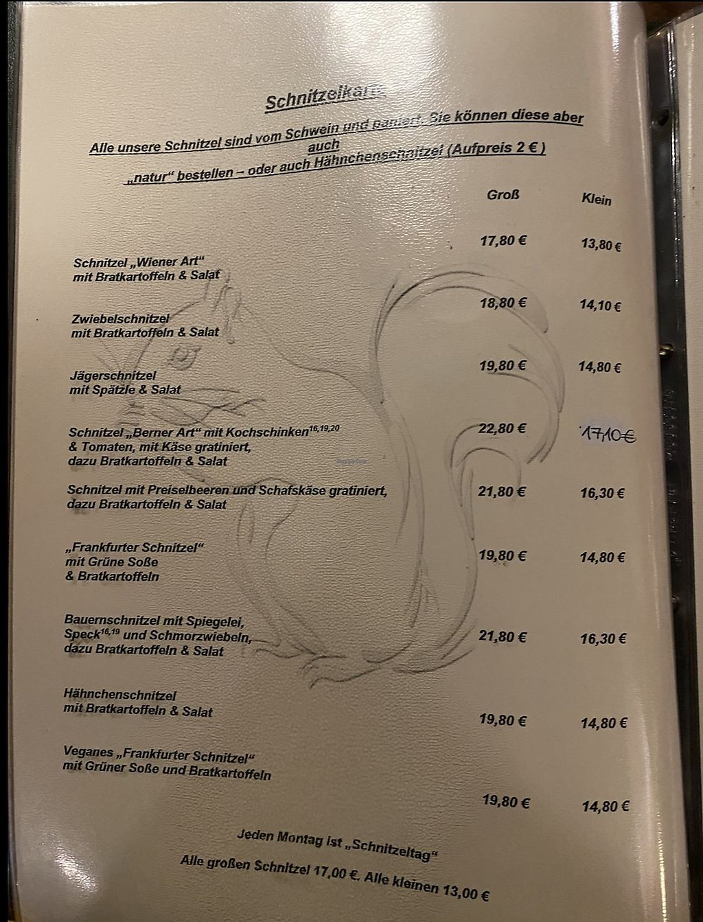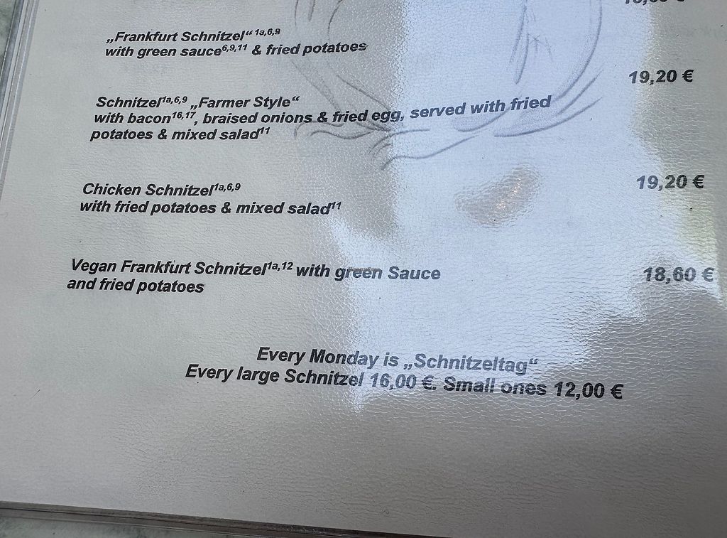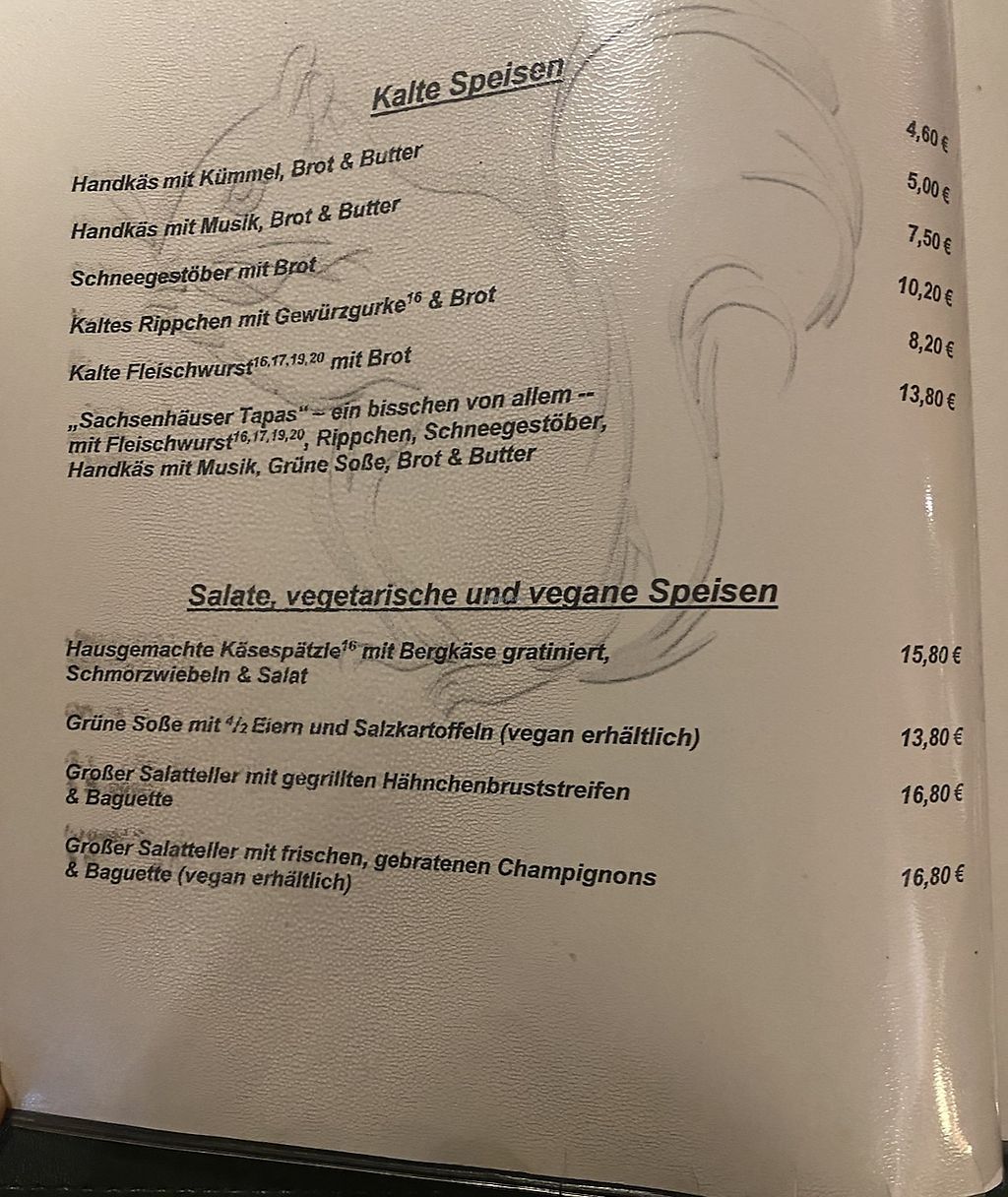 Menu listing vegan items